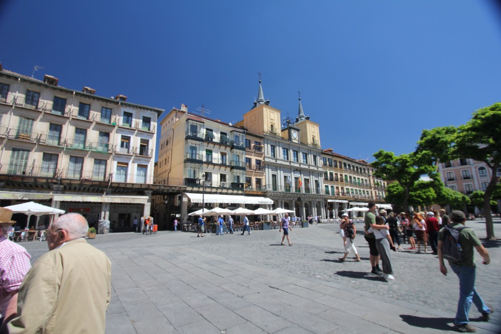 My daughter and I, actually, was too caught up in exploring and photographing the Alcazar and got left behind by our tour group (we weren’t the only ones). After a bit of panic, we simply walked uphill from the Alcazar on the Calle Marques del Arco we came to the City Center, Plaza Mayor and the Cathedral of Segovia. The Plaza Mayor is a cute square to grab a drink, do a little shopping and also to take your pictures of the Cathedral.