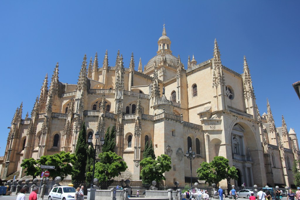 We caught back up to our group as they were exiting the Cathedral so we didn’t get to see too much on the inside (just a glimpse), but it was definitely a beautiful construction on the outside. We could have rushed back during the lunch break to see the inside of the cathedral but after just seeing several churches in Rome, Barcelona and Madrid, we simply said “pass” on this one and spent more time at the Roman Aquaduct.