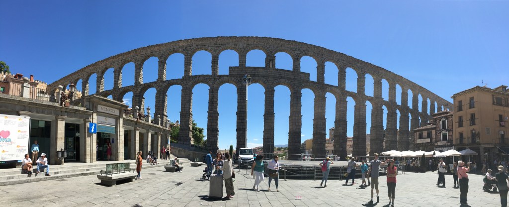 After taking the requisite photos of the Aquaduct and its many arches, we headed back down the avenue Acuducto towards the bus parking lot, to continue on to the next part of the tour.