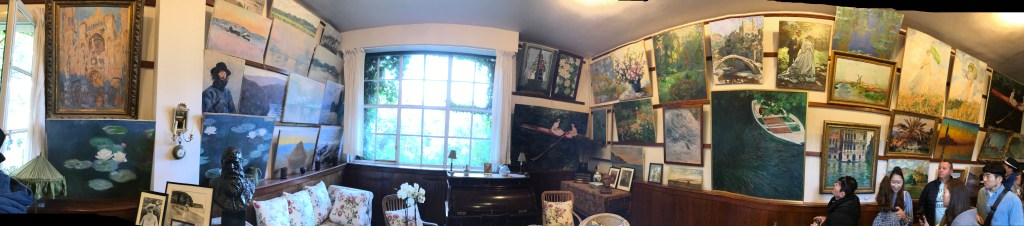 Once the requisite photo opportunity was completed, we had a brief overview of the grounds, home, and life of Claude Monet. Monet loved to paint the same scene many times in order to capture the changing of light and the passing of the seasons. There are many Water Lilies paintings as well as other paintings of people and the fields around Giverny.