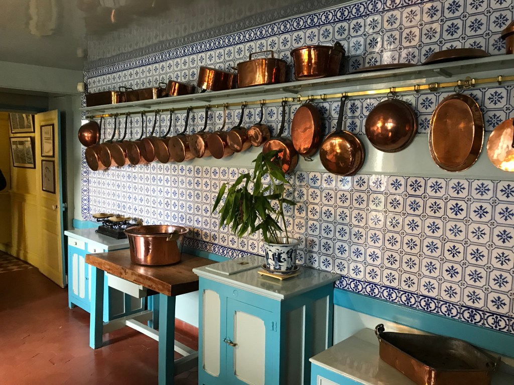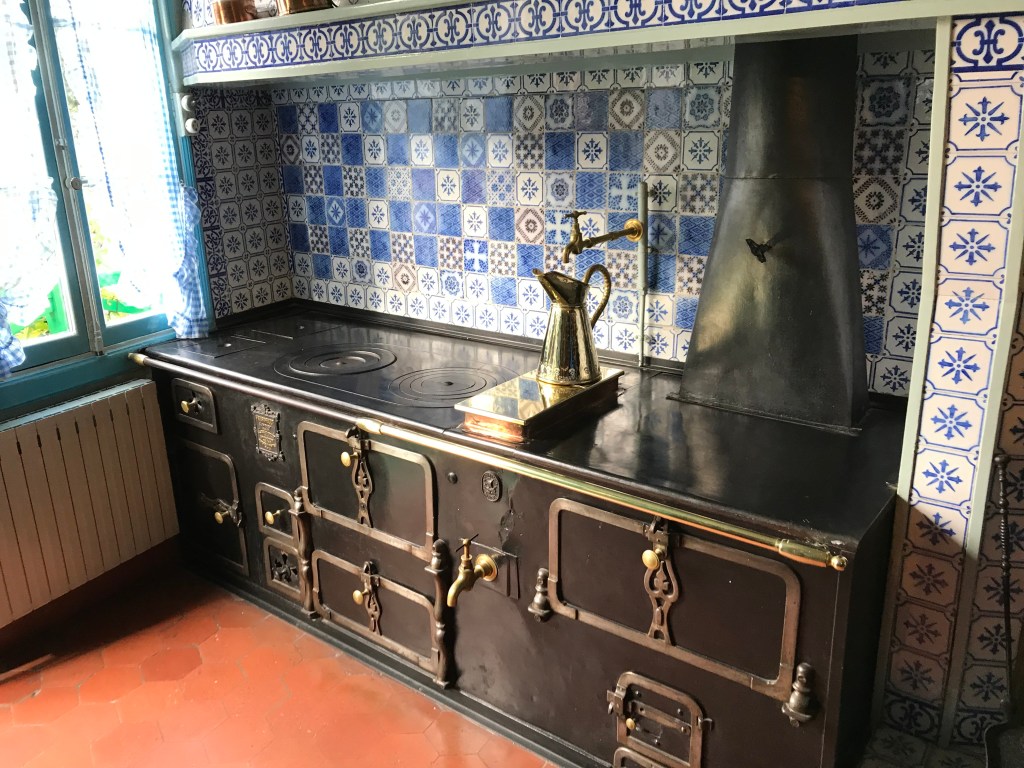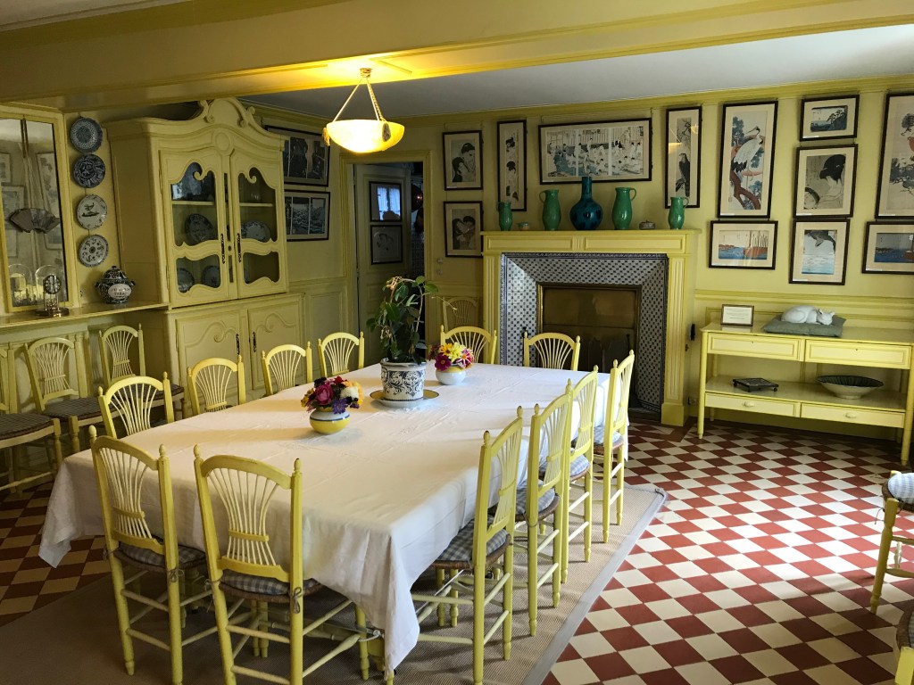 Monet lived in this Giverny home with his wife and 8 children. Two of his children were his from his marriage to Camille and the 6 other children were Alice Hoschede’s who became his second wife. The home is a two story where ground floor visitors can see the blue salon (Monet’s reading room), the “épicerie” (the pantry), the living room, which was his early studio, the dining room and the blue-tiled kitchen. Upstairs you can see the family rooms, including Monet’s which was renovated in March 2013. Nearby (and now the gift shop) is the small barn that was converted to a studio where Monet painted the larger water lilies paintings and murals that would not fit in his home.
