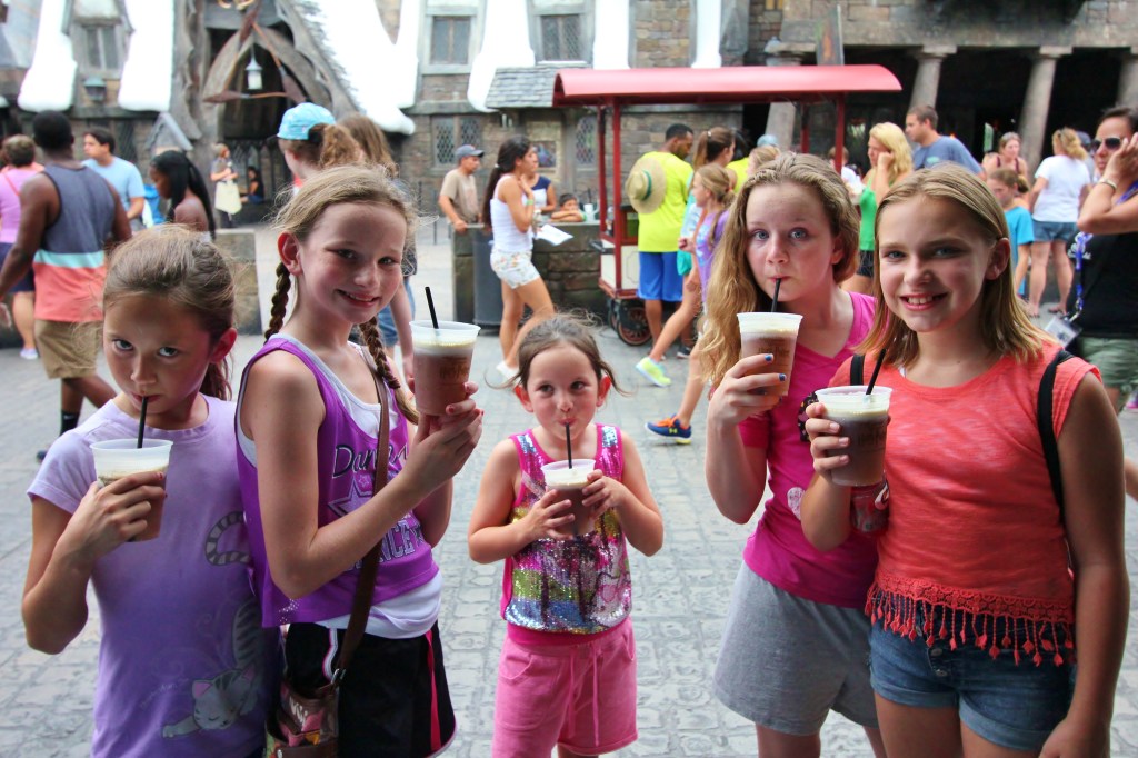 All the favorite Harry Potter characters are in the two areas. Pay a bit more and you can zoom from one theme park to the other on the Hogwarts Express. Always remember to pack a light poncho for the 2 pm shower that Florida seems to conjure up daily. If you get warm I do recommend a nice butter beer to cool you off. If you get an urge to make it again at home afterwards try this recipe by clicking on the girls photo. I think an adult version is just as good with Crème soda and butterscotch schnapps.