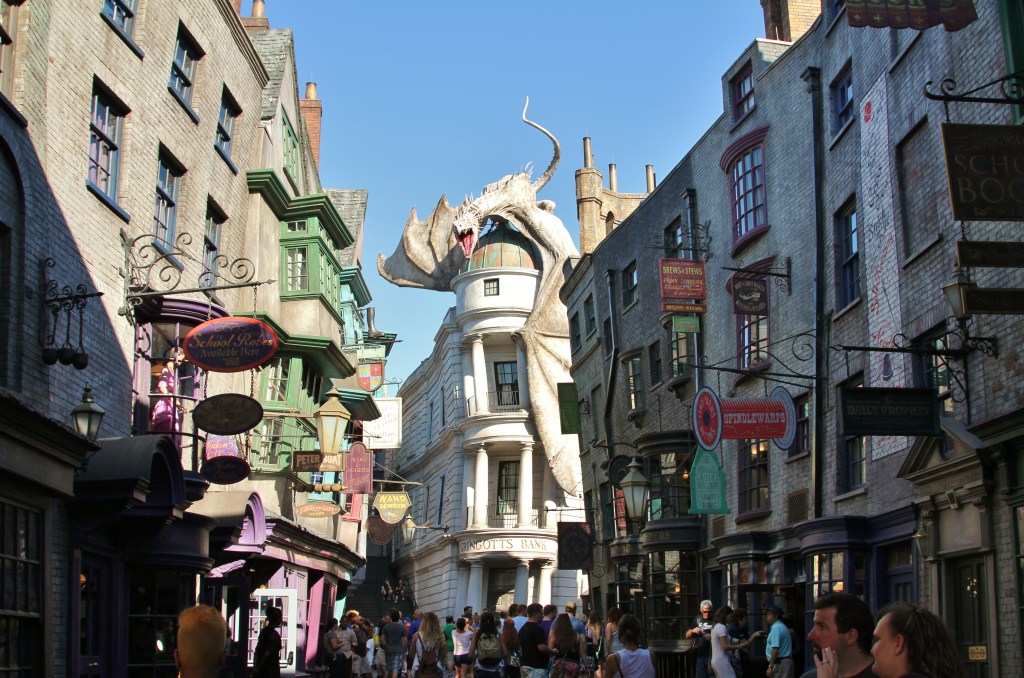 Our girls (and me too) loved the Harry Potter experience. The buildings looked just like I imagined from the books, the Hogwarts express looks and feels like the real thing, and Gringotts with dragon are stupendous. I also enjoyed the Harry Potter area because while my daughters were off to ride the latest immersive ride for the 6th time I was able to pop into a pub and have a pint of English ale. That is what I call a win/win scenario. The kids though will want to stop to get a chocolate frog or Bertie Bott’s all flavor beans