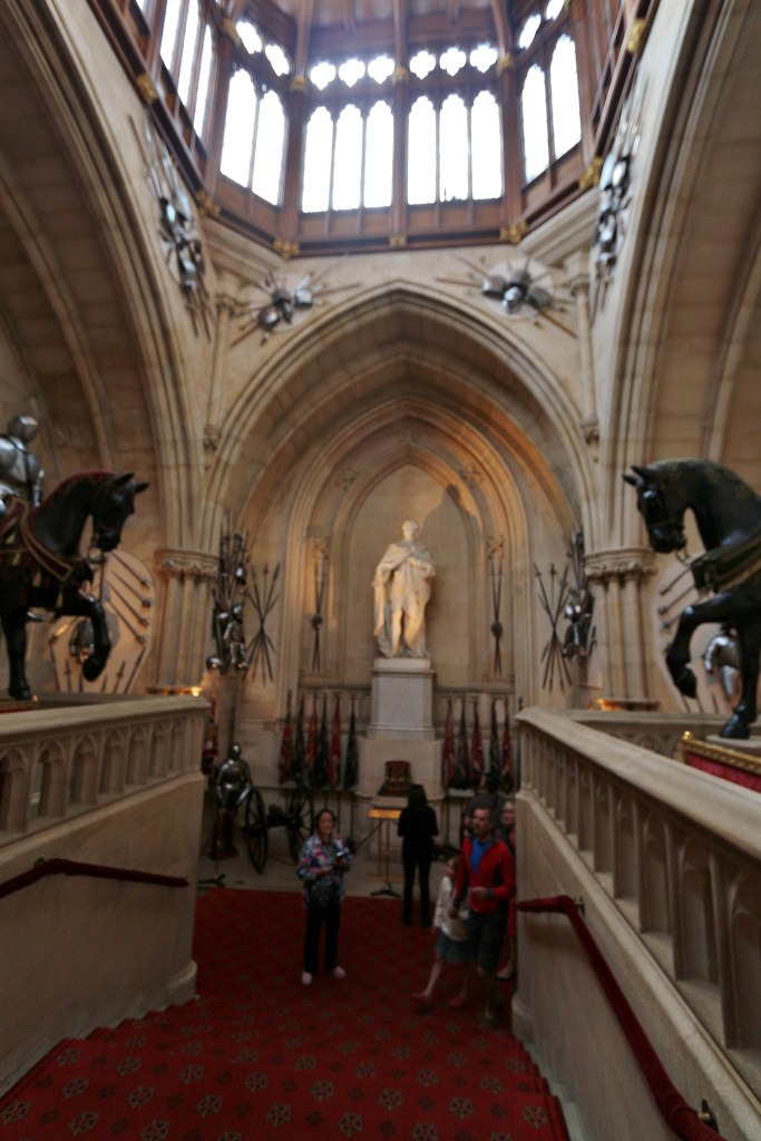 Upon entering the Castle proper, guest first get to see Queen Mary’s doll house. Looking like a wealth London home it comes complete with running water, lighting and filled with thousands of objects all built on a 1-12 scale. Never meant to be actually played with it is an adult toy complete with gardens out front. The state apartments are an amazing array of rooms, staircases and hallways that tourists can marvel over. Adorned by mounted knights, a wealth of armaments, paintings the apartments let you know you just a bit how the other half lives. You are not supposed to take pictures but my camera with wide angle lens seemed to find a way to click away. If you aren’t as irreverent as me, take your time as it is worth drinking in the ambiance.