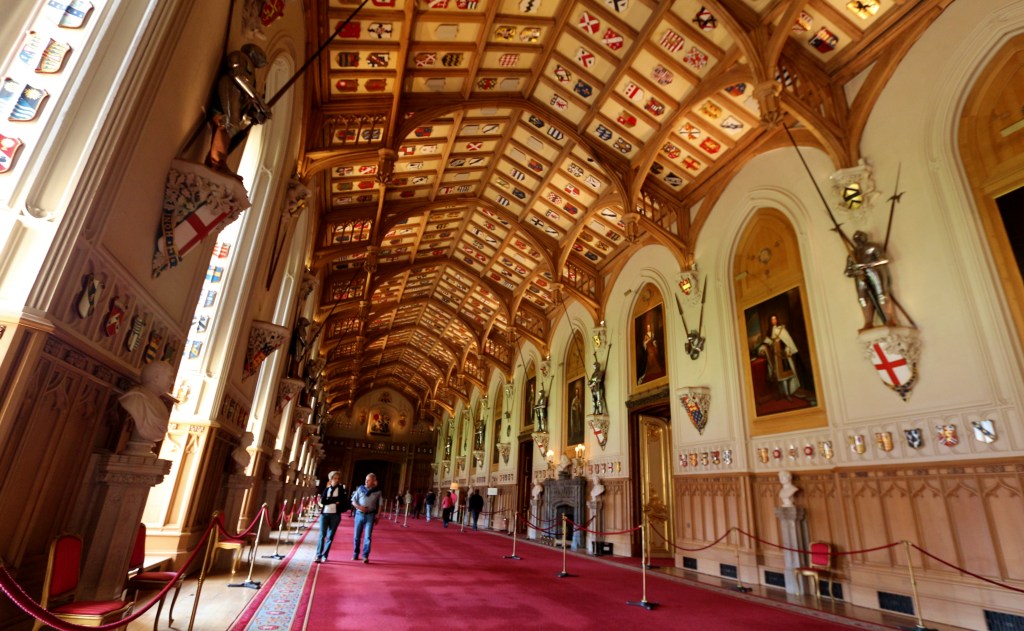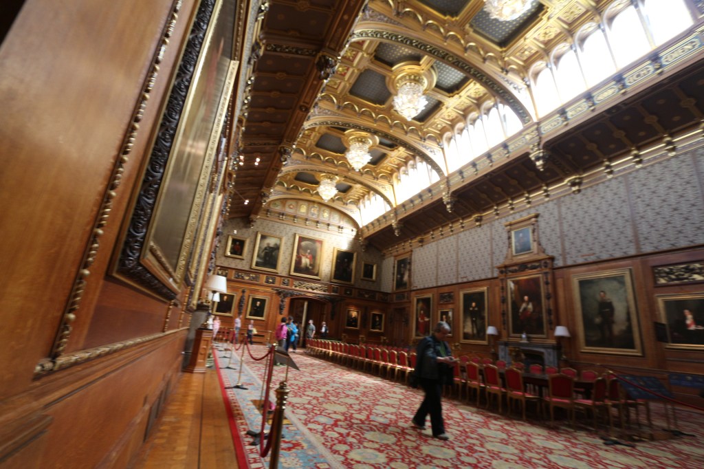Unfortunately, a fire in 1992 burned most of the roof off the St. George’s Hall. It started from a faulty spotlight and within hours it had spread consuming 115 rooms including 9 state rooms. Now fully restored they are all stunning.