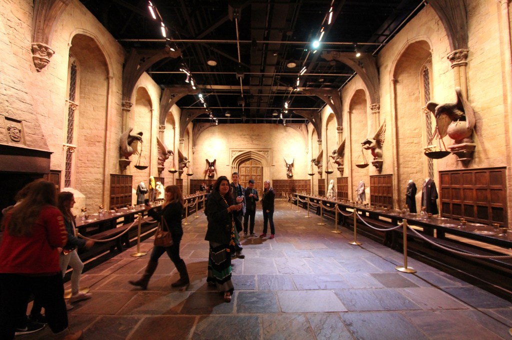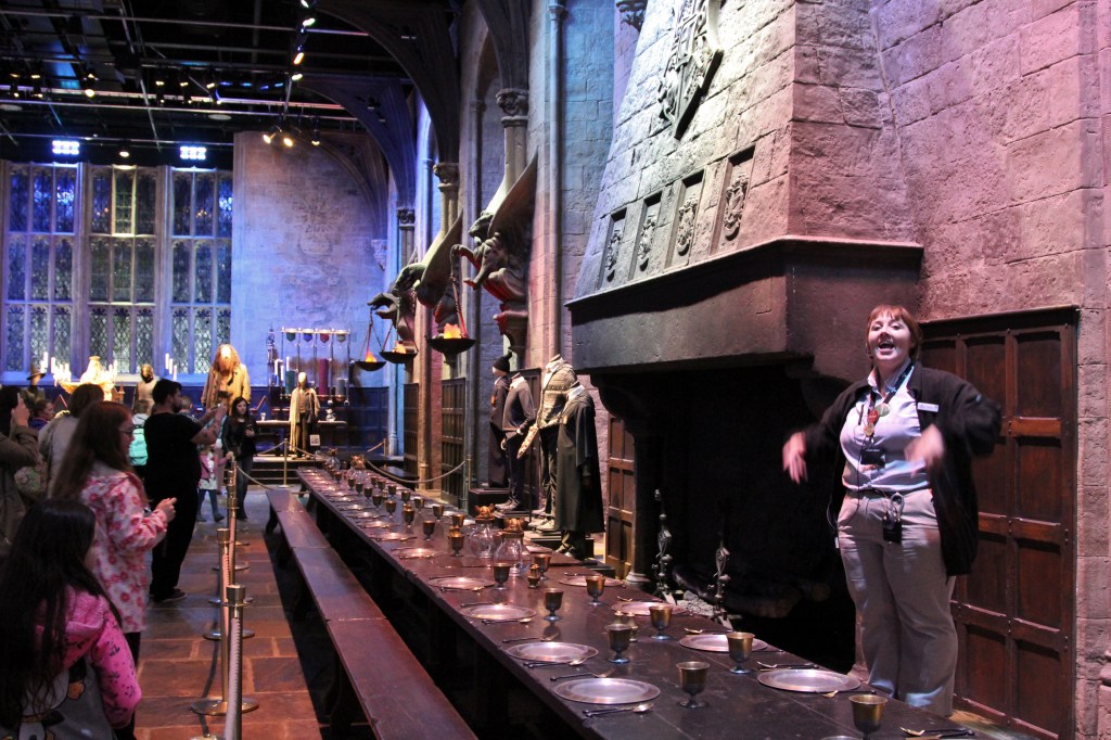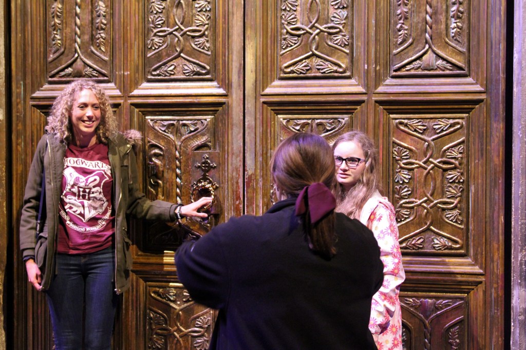 The timing of our Harry Potter Experience was ideal because not only did we escape the cold and gloom outside, (unexpected in June), the weather kept many tourists at home, ensuring we didn’t have too many people on our tour. One of the first highlights of the tour is the opening of the doors to Hogwarts’ Great Hall. I scored points, by proxy, when my daughter was selected to open the doors for our group.