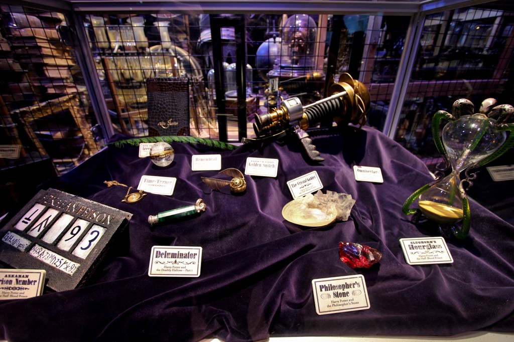 Following up our lunch, we explored the town of Hogsmeade, saw many of the animatronics magic used in the film(s), models, images and we finished with pièce de résistance, the complete 1:24 scale model of Hogwarts. It truly is magnificent as 86 artists worked on it (74-man years of work) with over 2500 fiber optic lights. Overhead lighting can change the look too from daylight to dusk and even a full moon glow.