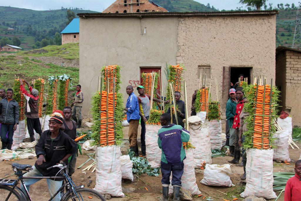 Quickly my viewing and photographing the people of Rwanda made me grow more and more uneasy.   It soon felt wrong.  I was here to photograph the gorillas not to be a voyeur, dropping in from the US, taking pictures of the native people from the comfort of our modern jeeps.  One particularly strange episode was when we were riding to Goma to see an orphanage that Jack Hanna supports.   Along the way we paused, and once again, saw the abundance of Rwanda with people bundling up huge sacks of carrots for the market.   I looked and saw no processing machinery nor stainless steel tables, but rather lots of manual labor.  Soon the photo opportunity was over and we arrived in Goma to have our buffet lunch at a western style hotel, chaffing dishes keeping the food warm as we ate at our white linen draped tables.   What a farce.  The haves and have not, we were eating our meal in a fairy tale, while the real Rwanda lay only a few meters away.