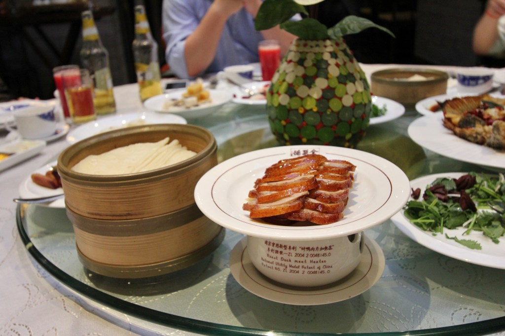 The gracious hosts took me and my colleague to a restaurant for a traditional Peking duck meal. This ceremony is very elaborate. We had a private room and we started our courses which included most of the duck pieces and parts. There was duck tongue soup, fried duck hearts, ducks’ feet with wasabi, and likely other duck parts until the finale, the duck breast. I must admit that some of these dishes made me a less than eager guest. But when in Rome…err I mean Beijing.