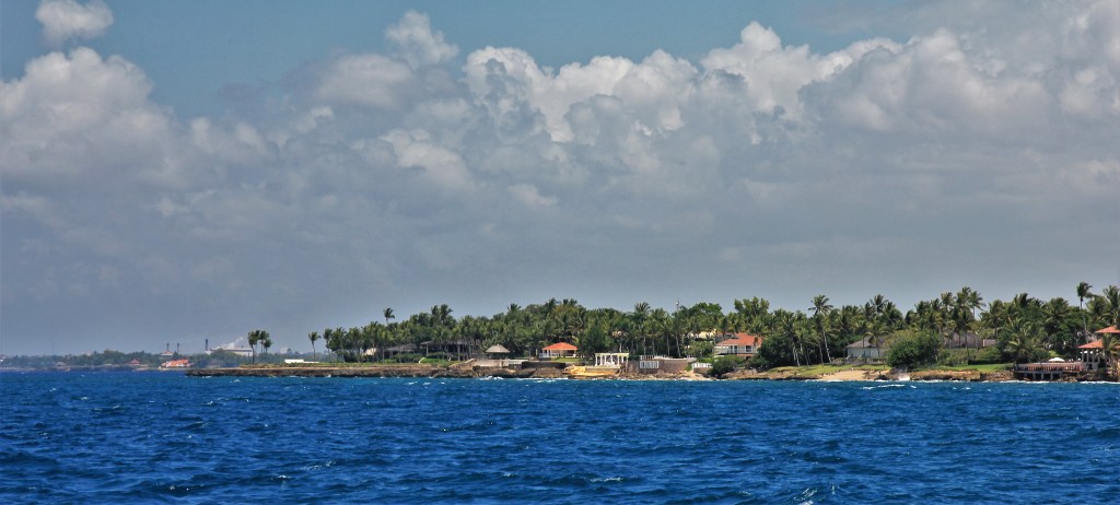 We started with a quick drive up the coast to a small port of Playa Bayahibe. Then they loaded us up into smaller boats for the journey out to the shallow park area between the main island and Isle Saone. After standing around in chest high crystal clear water we were transferred to a large sail boat for our trip to the isle itself. Once we landed our guide took across a spit of land to Playa de Gato. Here we relaxed until it was time to call it a day and head back to the resort.