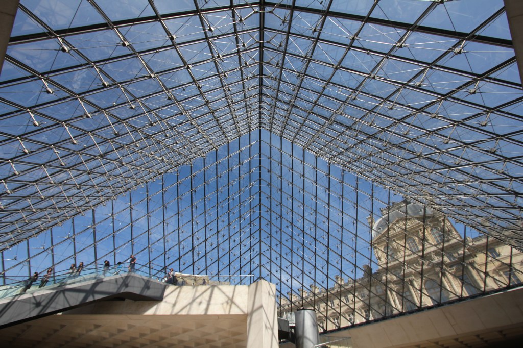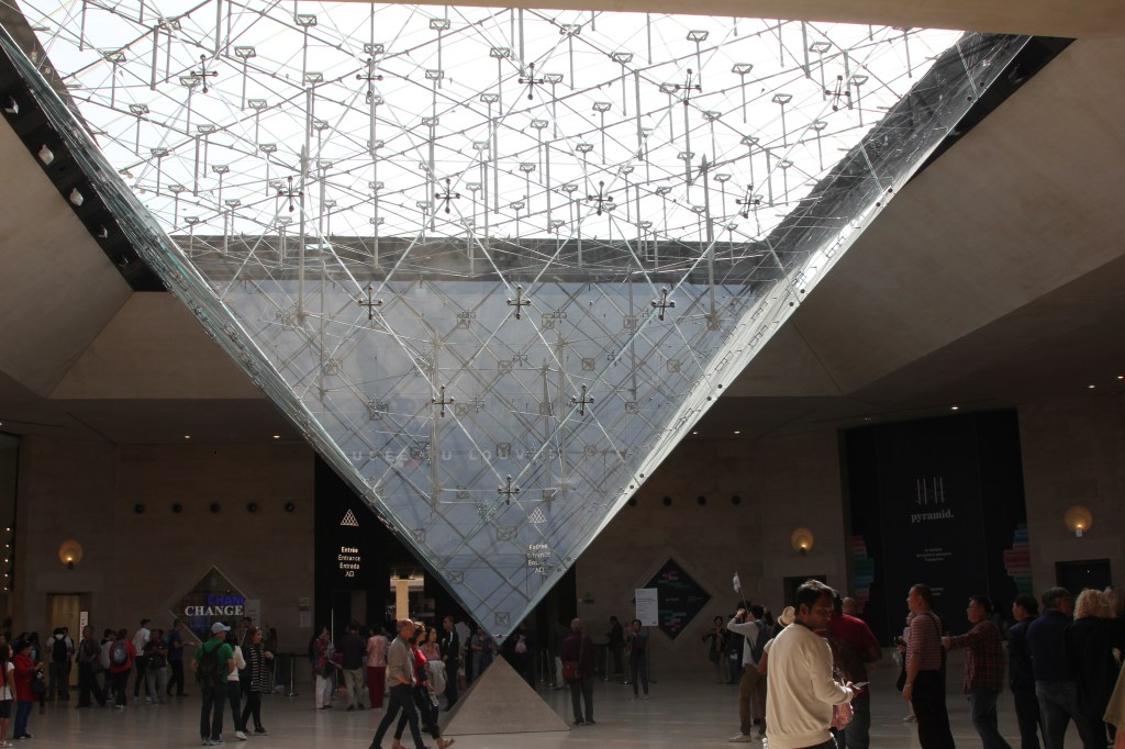 The Louvre is situated on the right back of the seine river, in the first arrondissement (1st district). Situated in what was previously a royal palace, it has interior room of 782,910 square feet and holds over 38,000 displays. The iconic pyramid designed by American architect I. M. Pei was initially despised by Parisians but is now symbolic to the Louvre. The Rose line and downward triangle made famous in the The DaVinci Code by Dan Brown was fun to see in person and I did actually wonder what was below. The larger upward pyramid covers the central atrium and associated nearby ticket counter.