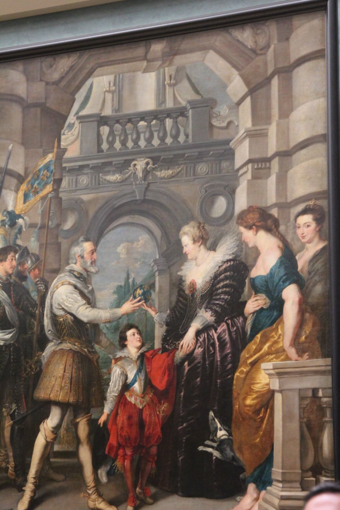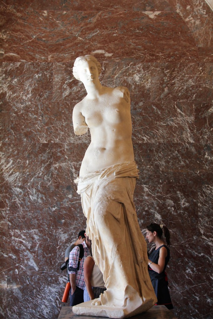 The most famous painting in the world is the Mona Lisa. Given the line size was relatively short this time of the morning, it was going to be our first stop in the Louvre. The Mona Lisa’s normal location is Salle des États which has bullet proof glass, climate controlled interior, and special LED lights that won’t degrade the painting. However, when we were at the Louvre it had been temporarily relocated to a large room with many Ruben paintings on the wall in a special enclosure. The director of the Louvre was once quoted saying that of the 9.3 million visitors to the Louvre yearly 80% just simply wanted to see the Mona Lisa. Too bad about the Rubens in the background they are forgotten! The best time to avoid long lines is to go first thing in the morning (Louvre opens at 9 am) and/or Wed and Fri late (the museum stays open till 9:45 pm) to avoid the crowds. Once you are finally let in to see the Mona Lisa unfortunately you only have 20-ish seconds to view her before next group.
