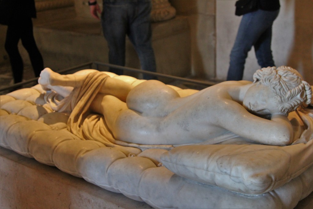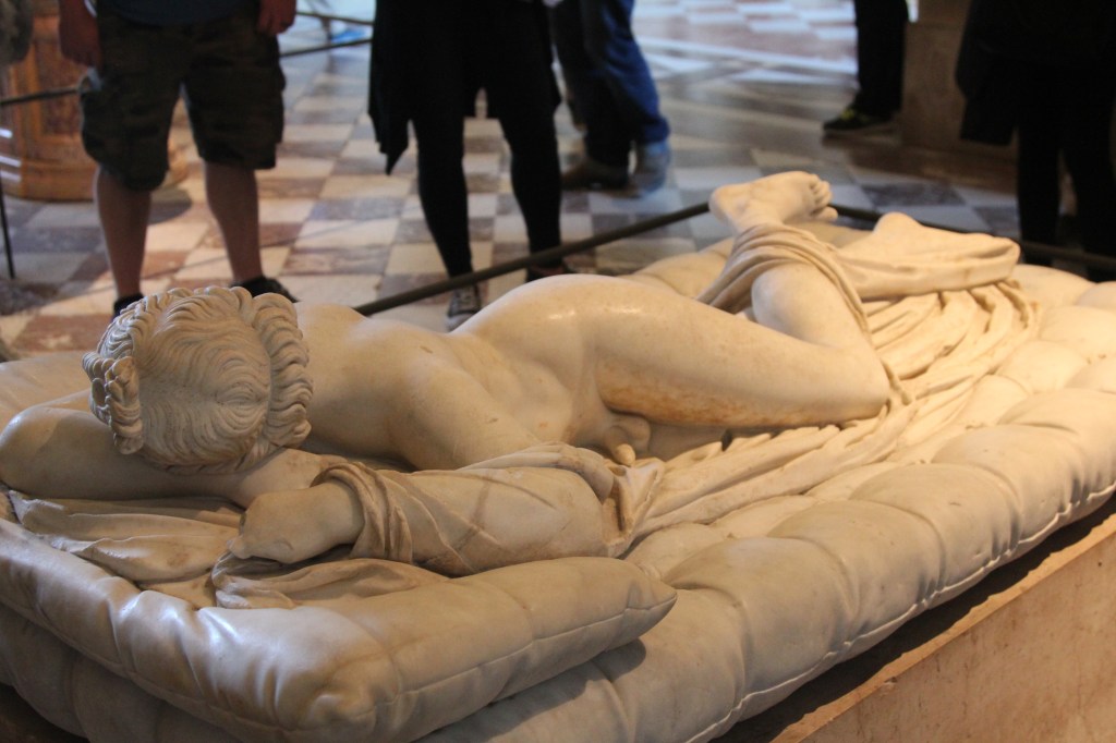 Not too far away from Nike, we viewed several more magnificent sculptures. Venus di Milo, The Slaves by Michelangelo, Cupid and Psyche, Sleeping Hermaphrodite On Bed, and more are exquisite renderings in stone. While paintings seem to be common today I think we have lost some of the beauty and techniques of past sculptors. This transformation of stone, for me, is beyond my comprehension and I love viewing them.