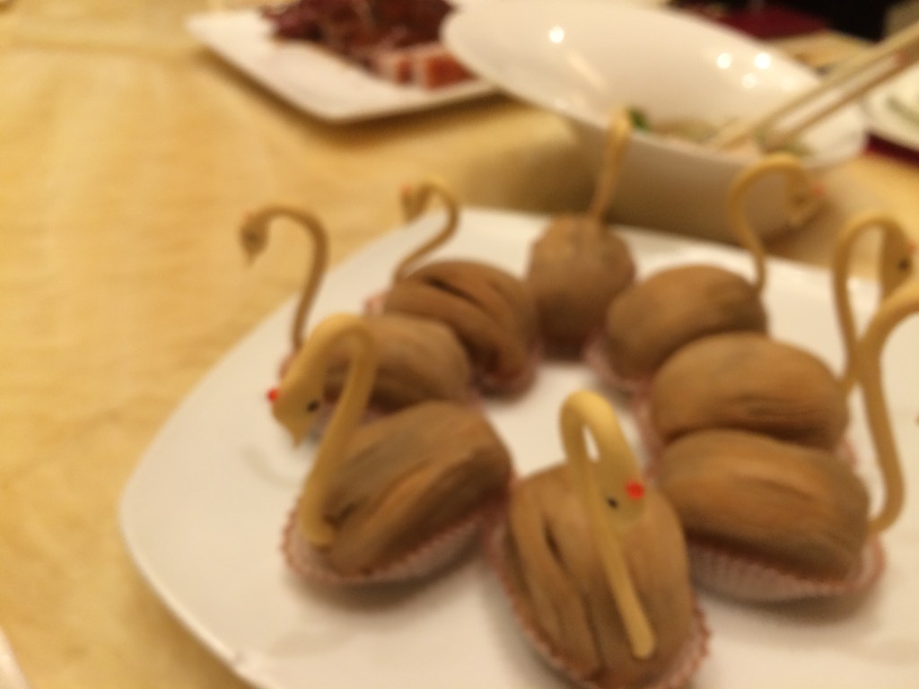 I am not a picky eater and I do like Chinese food here in the US, but when actually in China things can be a bit more challenging. During my time in Shanghai we generally ate a western style breakfast at the Hilton but lunch and dinner were with our hosts. Sometimes what was ordered was delicious and at other times a bit scary as we weren’t exactly sure what we were consuming. Nevertheless, our hosts were extremely gracious and we appreciated all they did for us. One particular the last evening we were taken to an exclusive restaurant where we were the only table. This night we had a multi-course meal complete with personal “hot pot” cooking and bird’s nest soup for dessert. Quite good.
