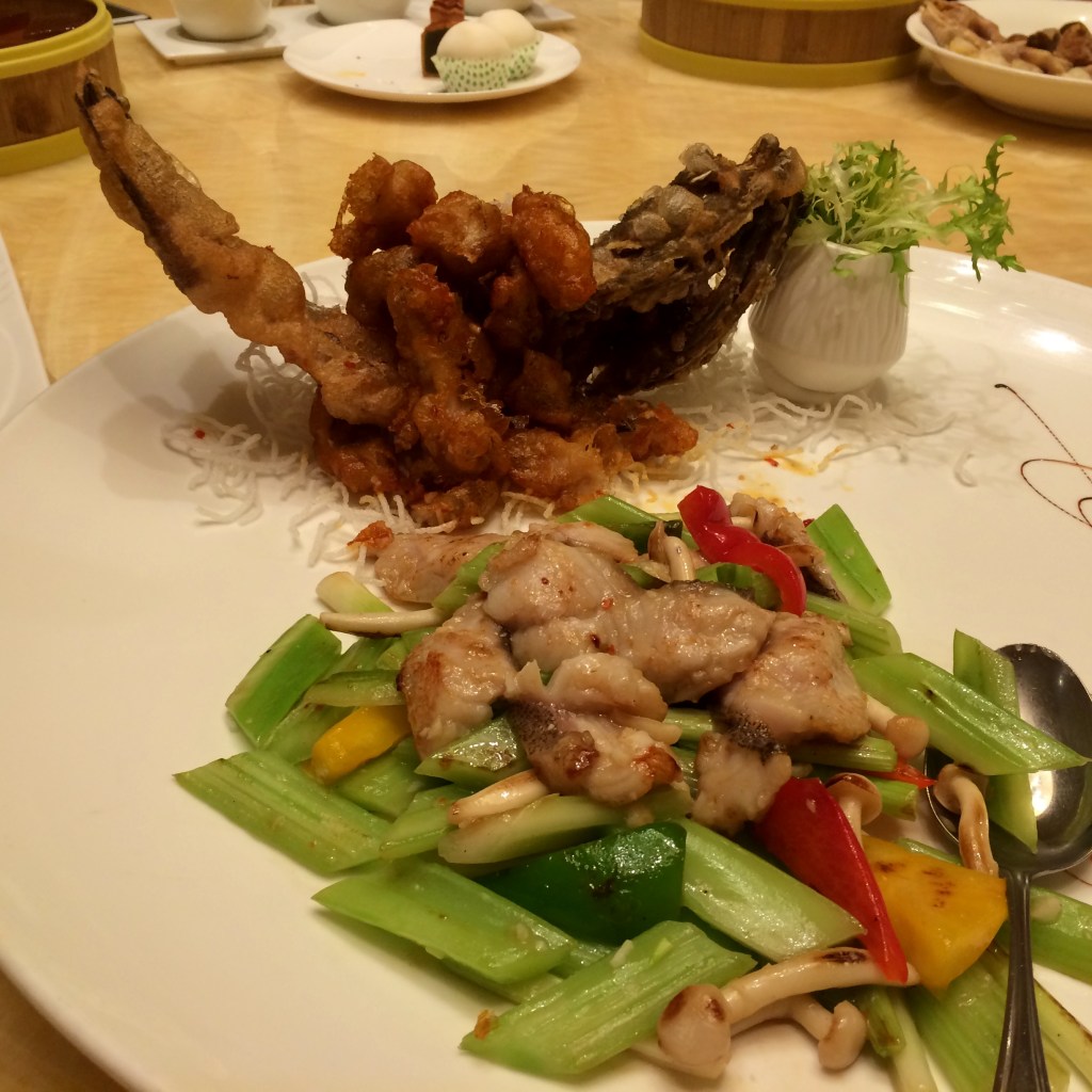 Unlike many, I am not turned off by the lazy Susan approach where everyone grabs items with their utensils. People grabbed their items and didn’t touch any other items and many times they used a separate pair of chopsticks to transfer items from the communal plate to their personal dish. The only dish I purposely avoided was when a colleague was scooping up a fried item and Jason, our Taiwanese friend, said “Are you going to eat that?”. David asked, “What is it?” Jason said, “Fried pork lung…and I don’t even eat that”. Good to know so I can pass on that one.