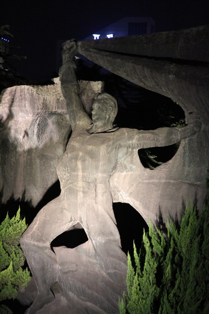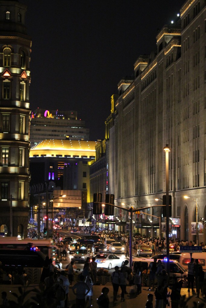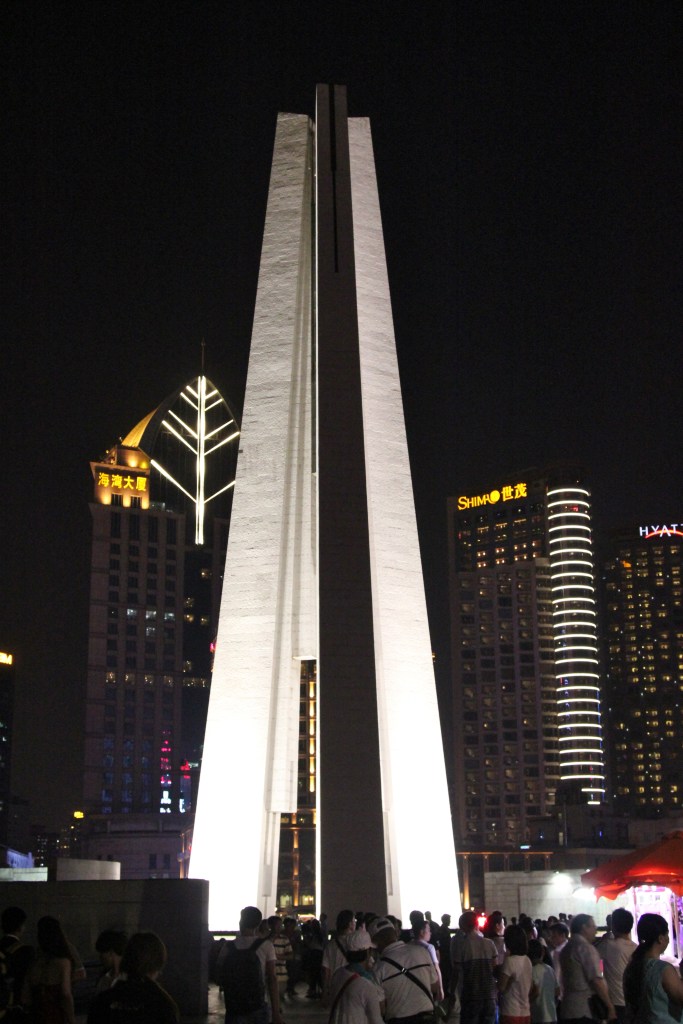 Given this was the first clear night after a major storm, the Bund area was mobbed with people. Of course with 27 million residents in Shanghai, it isn’t too hard to have a lot of people on the Bund. My colleague and I enjoyed the walk up the Bund taking in the sights of the skyline, the statues, the pyramidal Shanghai Hero’s of the People monument and a bit of people watching. One of the nicest things to see were newlyweds getting their pictures taken and seeing the brides in their red wedding dresses, which is the traditional color in China.