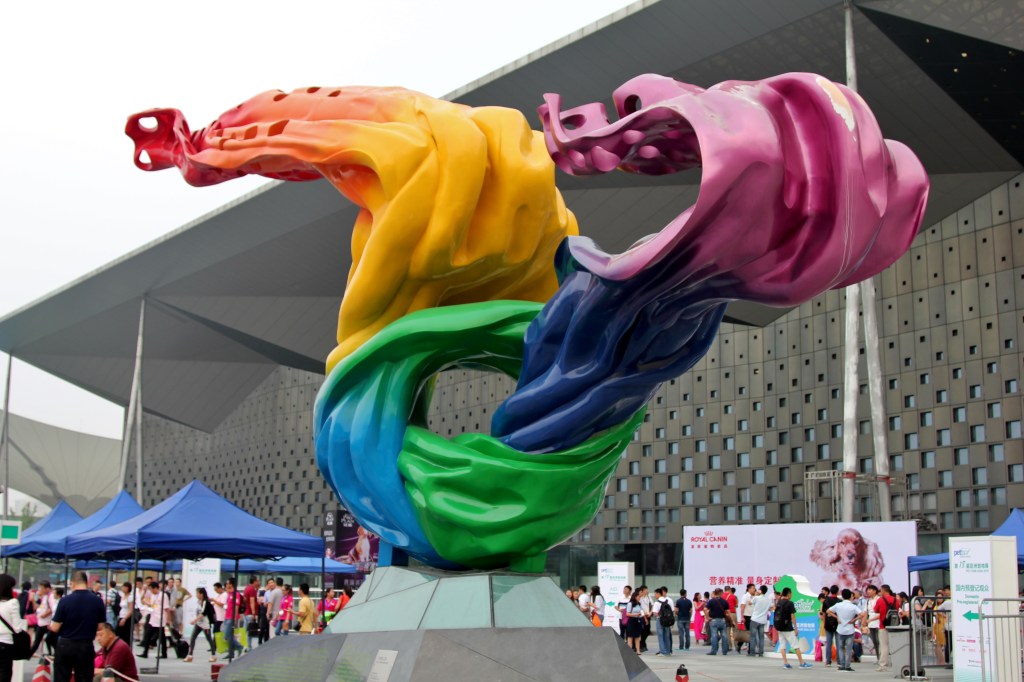 The real reason we were in Shanghai was to learn more about the Chinese market, get to know our Shanghai distributor more, and complete some product training. We attended the Asian Pet Fair at the Shanghai World EXPO convention center. The building itself is unique but the amount of product inside was mind boggling. I saw all manner of clothing for pets, more pet foods than you can imagine, and even “Hello Kitty” Dancers.