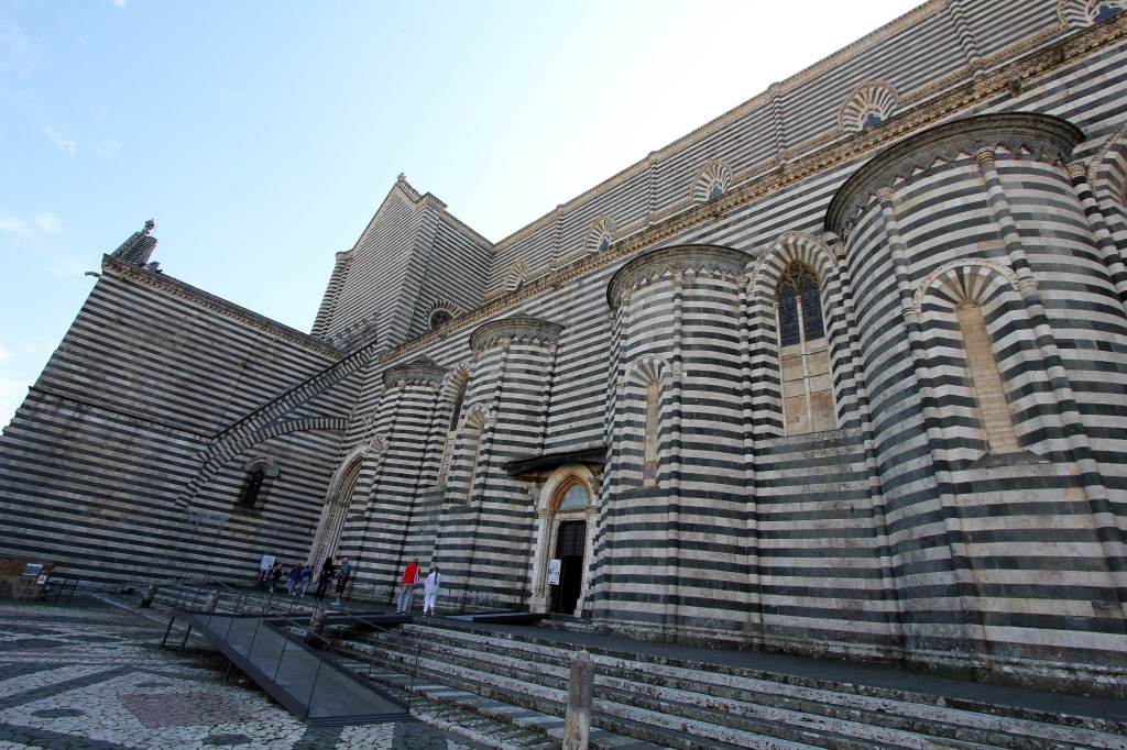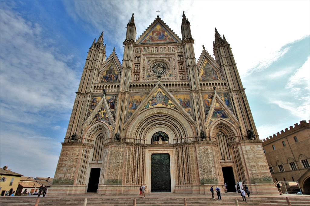 Hopping a small city bus the 9 of us were swept to the first stop where we were dramatically introduced to the Duomo of Orvieto. Started in 1290, it has a two-toned stonework from Travertine and Basalt rock types, giving the church a distinctive striped appearance. The facade is baroque with many beautiful mosaic panels. The most significant items about the church are: the frescos by Luca Signorelli in the Cappella di San Brizio; a holy relic where once a eucharist was broken and actually bled, where some of the blood was captured on a napkin and is now part of the holy relic; and that the pope had a residence in Orvieto during times of conflict in Rome.