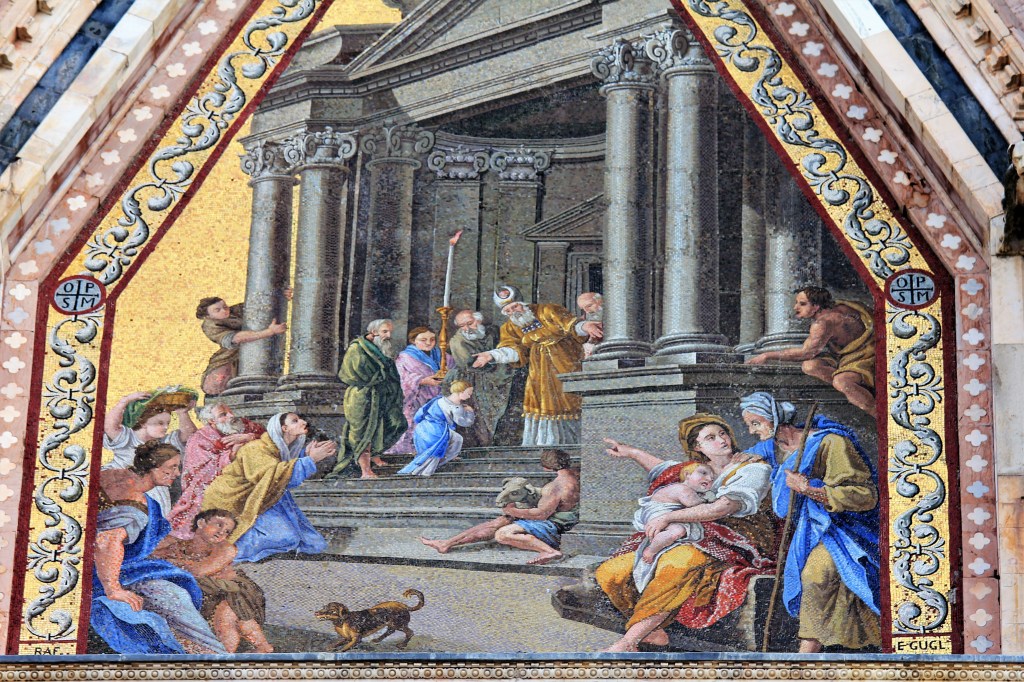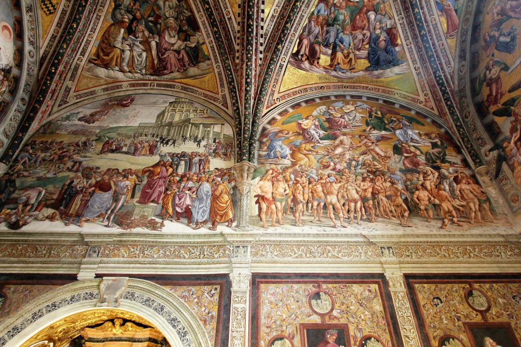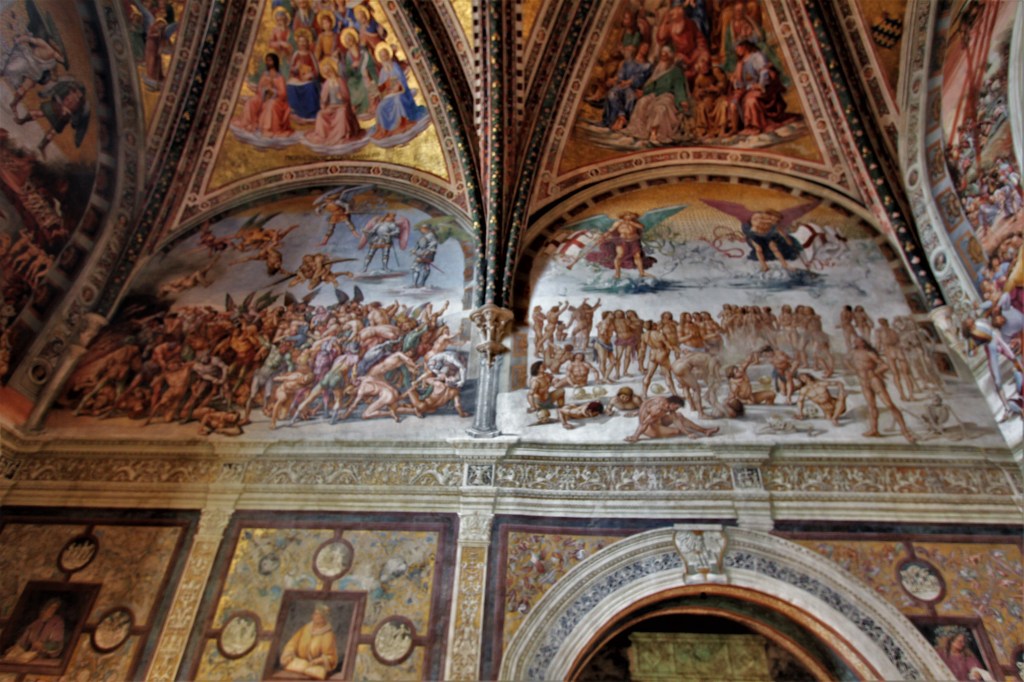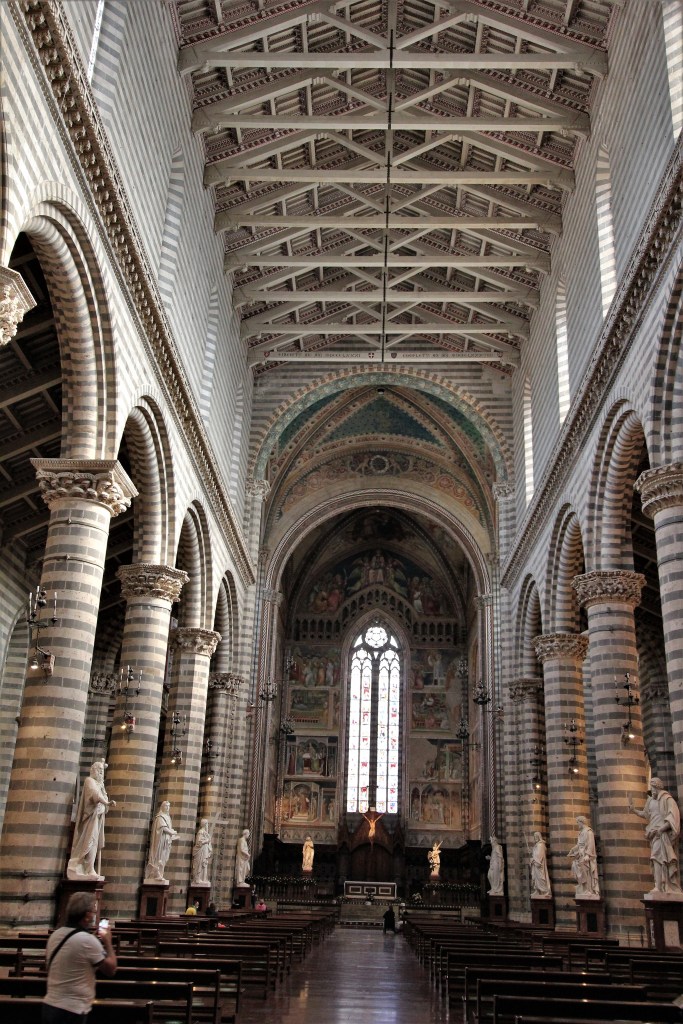 The frescos are quite stunning and really need a good guide to help explain some of the hidden items on every panel. Additionally, there are many statues and a beautiful rose window seen in many Gothic style churches.